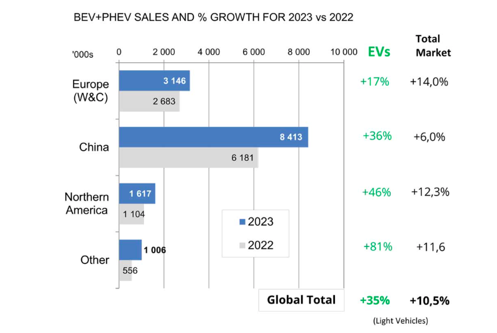 Źródło: R. Irle, Global EV Sales for 2023, EV Volumes, 22.01.2024, https://ev-volumes.com/news/ev/global-ev-sales-for-2023/