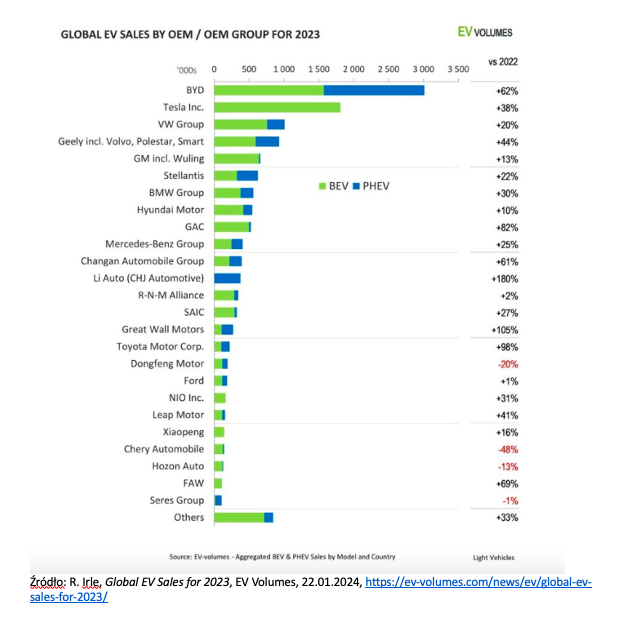 [42] R. Irle, Global EV Sales for 2023, EV Volumes, 22.01.2024, https://ev-volumes.com/news/ev/global-ev-sales-for-2023/ [dostęp: 7.12.2024].